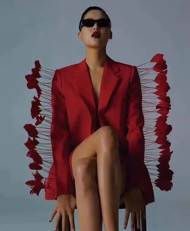 新年来临,一身红色可以更好地提升你的气场。而红色系的西服外套,最是冷艳高贵了。辛芷蕾选择了垫肩元素的红色西装,中长款的版型,可以更自然地玩转下衣失踪,多了魅惑时尚之美。