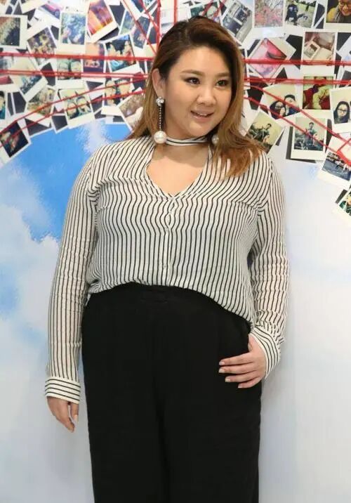 穿上这种条纹的衣服,搭配着一条黑色的裤子就会比较的宽松了。看得出来郑欣宜的身材一直都是那种很胖的,穿着这种衣服都显得特别的臃肿了呀。