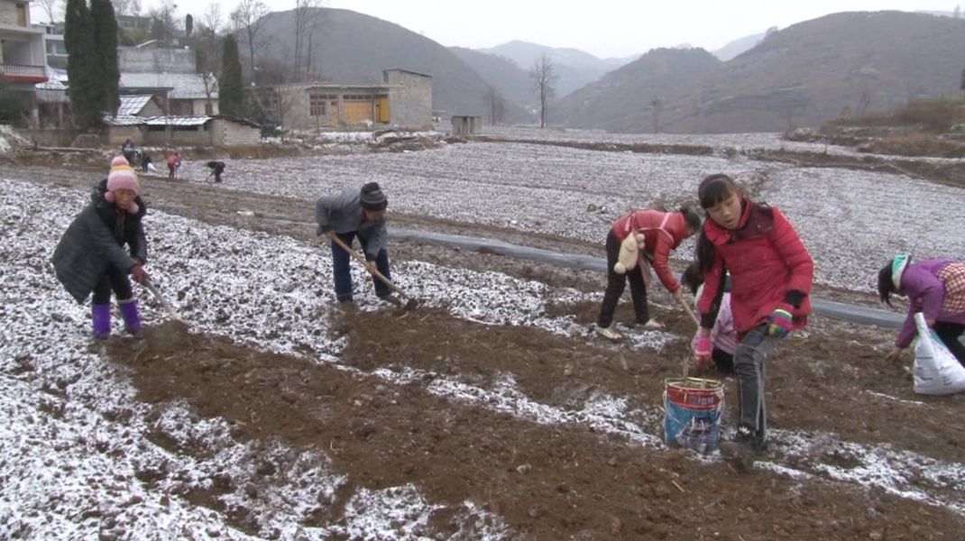 2月2号,在马场镇民丰村彭家寨,村民们顶风冒雪,在特色种植基地犁地、起垄、施肥、盖膜,全力做好300亩花菜种植的前期准备工作。