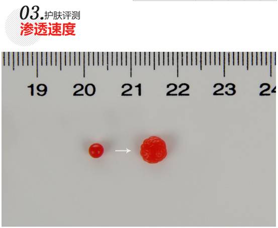 通过对比可以发现,仅仅5分钟后,水晶土吸收了凝露中的水分体积增加至原来的近3倍,水晶土的花纹也很明显的呈现出来,因此证明这款保湿凝露具有非常快的渗透速度,能够更快的深入肌肤发挥保湿功效。
