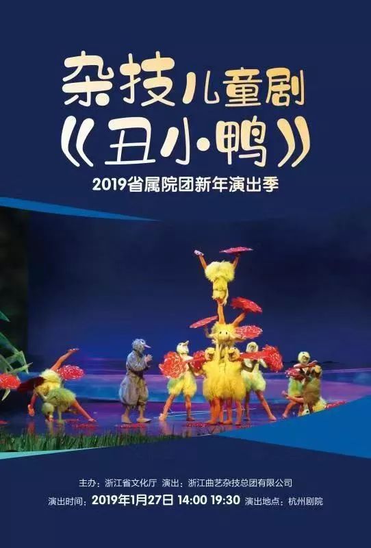 由浙江曲艺杂技总团和澳大利亚Reckless Moments公司合作创作的大型杂技儿童剧《丑小鸭》,是根据世界名著安徒生童话《丑小鸭》改编而来。该剧讲述了《丑小鸭》在恶劣的环境下,不怕困难,克服种种困难,最后变成美丽的白天鹅的动人故事。该剧构思巧妙新颖,表演形式大胆创新;还巧妙地把魔术与杂技等表演手段融合在剧中,剧中造型非常独特和新颖,这使该剧更加具有艺术欣赏性。