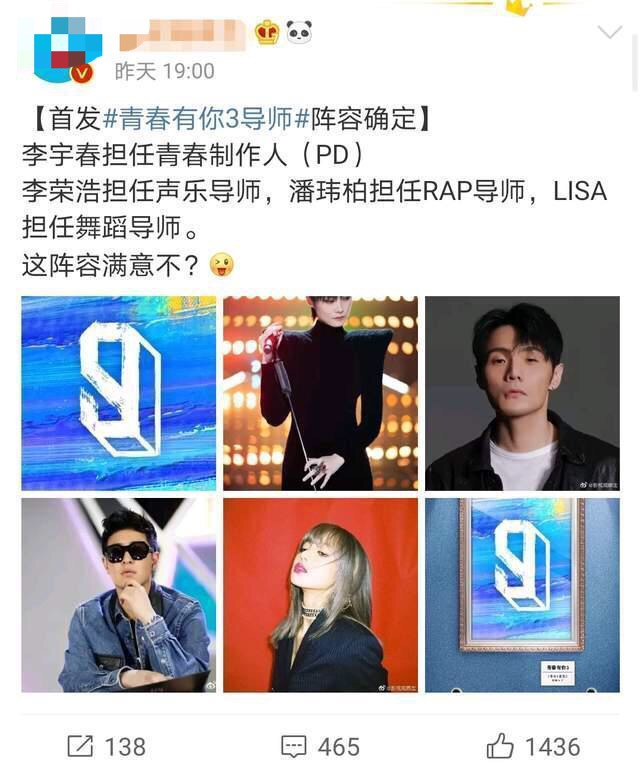 《青春有你3》官博也转发称“各位老师给春饼留点馅儿吧”。这不,还没官宣完,导师们已经全被大家知道了。