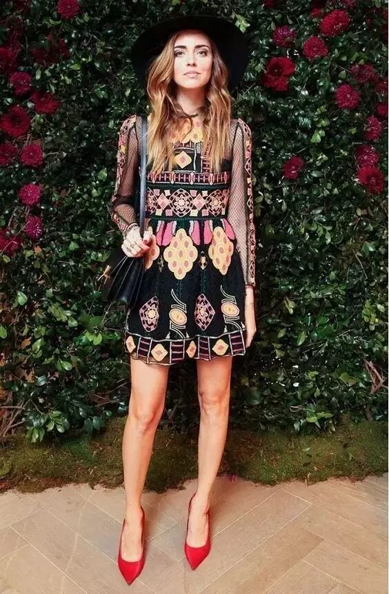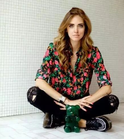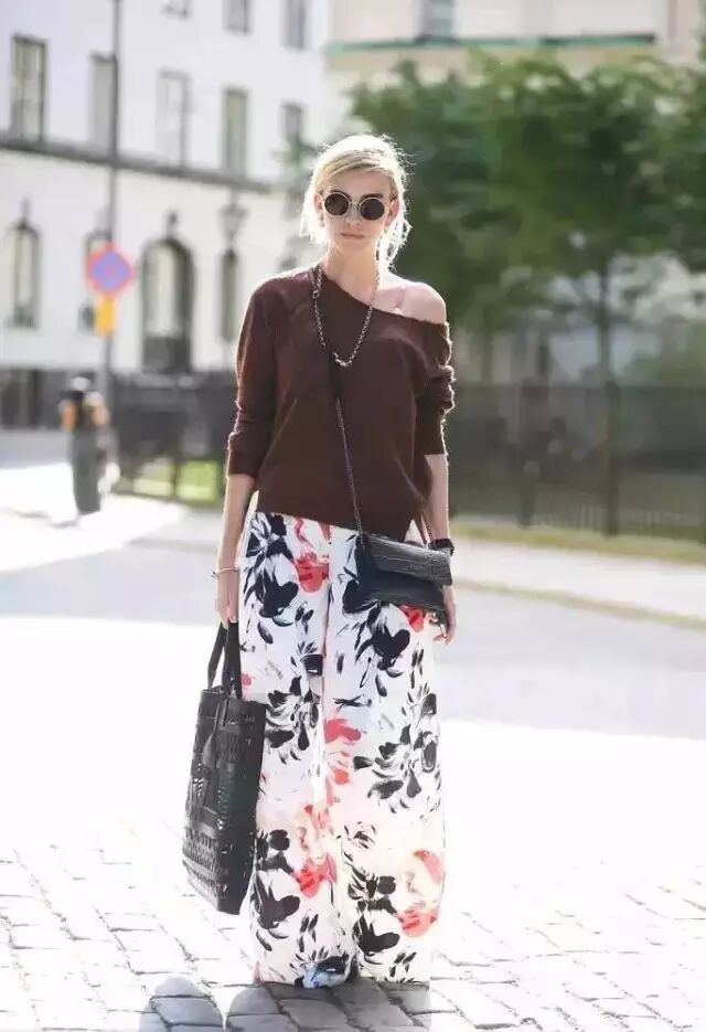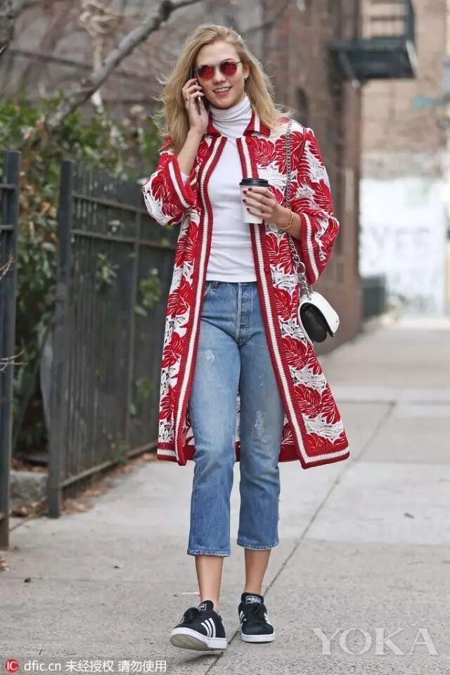 ▼看似老土的红绿印花上衣,加上黑色的紧身牛仔裤,瞬间高大上了。
