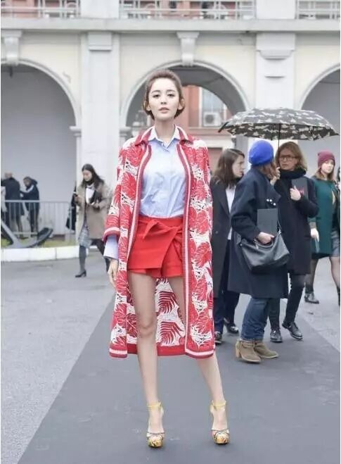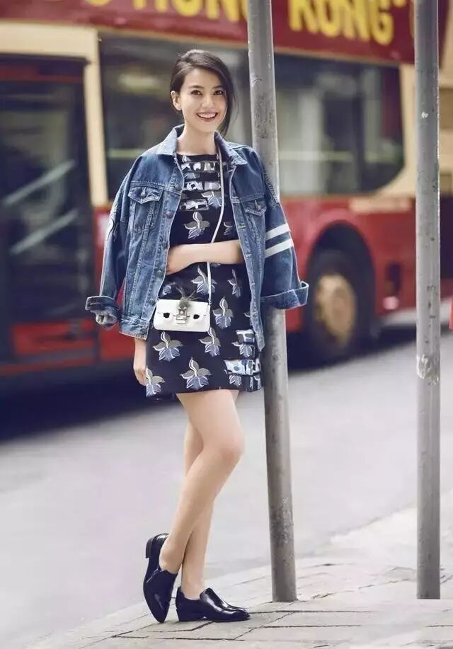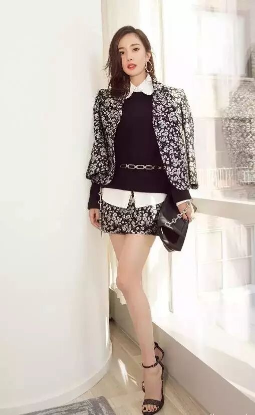 ▼杨幂的黑色印花外套,搭配同款短裙,时髦系数满分,而且女人味十足。