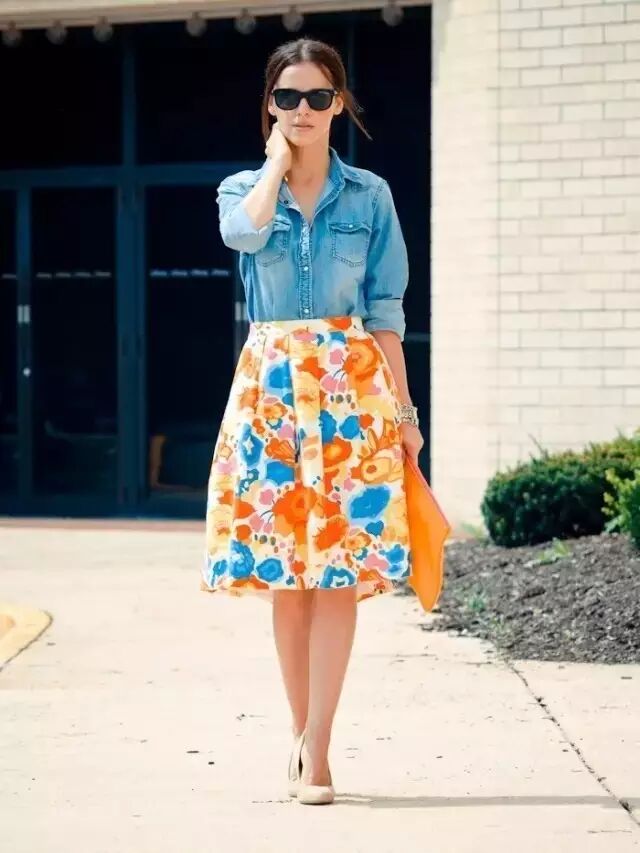 ▼牛仔衬衫也是不错的选择。搭配印花半裙别有一种复古的味道。