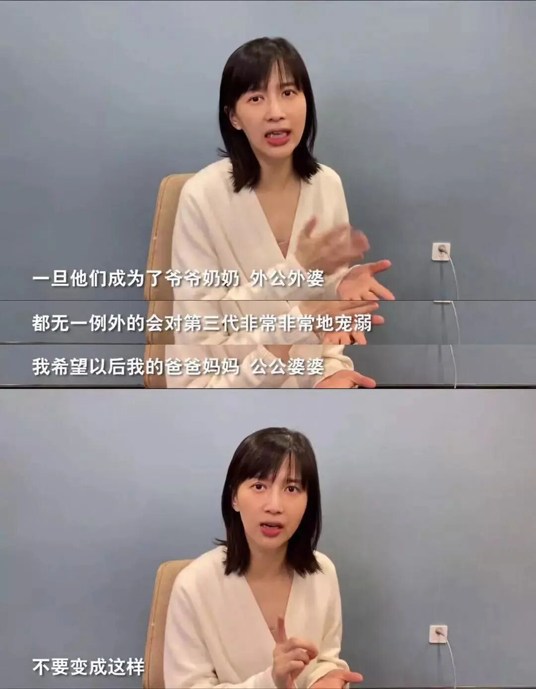 却在前头先给了父母长辈一个“下马威”:“一旦许多人成为爷爷奶奶外公外婆,都无一例外的会对第三代溺爱,我希望你们不要这样”。