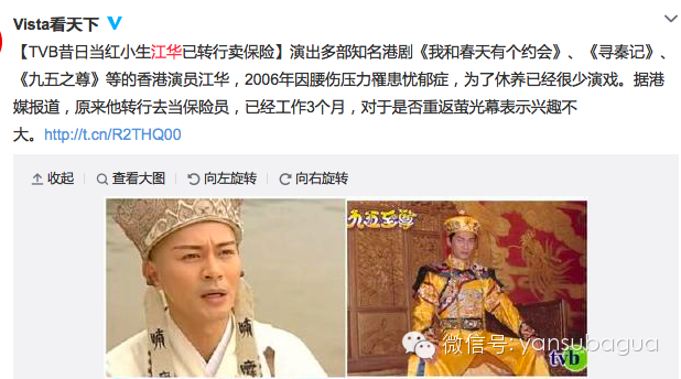 今天我的少女小助手跟我说,我觉得那个TVB演员江华去卖保险蛮好玩的耶,虽然并不知道他是谁。