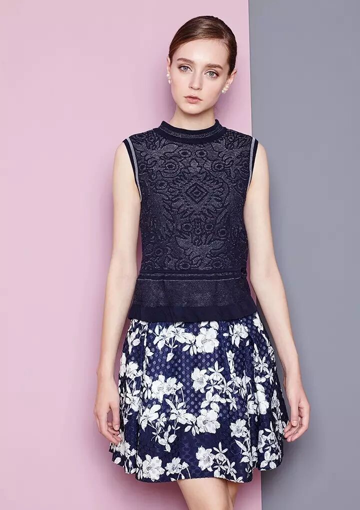 或张扬或内敛的深色印花,适合的场合绝不止于通勤,无论约会还是出街都是不二之选。同样深色的上衣搭配印花裙装,通透感十足。