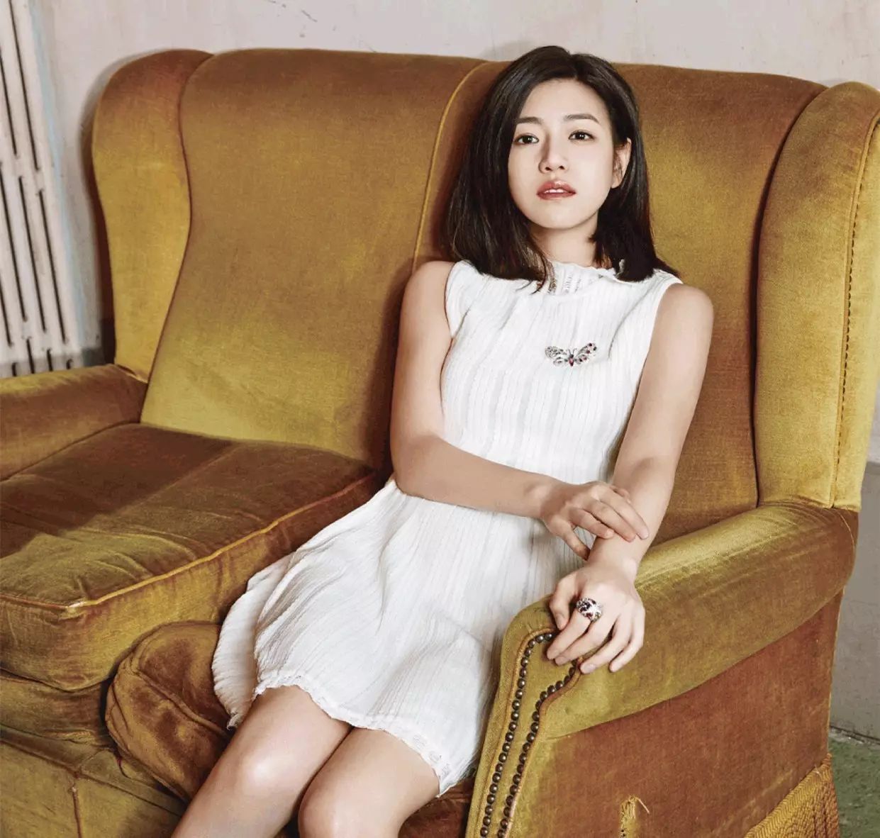 这位从青春电影中走出来的清纯少女,现在看上去有没有变优雅?陈妍希穿着的正是V.GRASS“小白裙”,衬托出别致韵味。