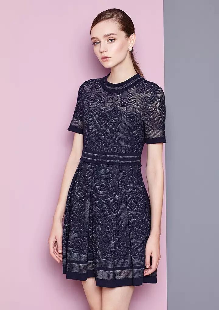 具有的收缩性的针织面料,修身却不产生束缚感,采用较重的纱线织成的裙摆更具有垂坠感,配上镂空细节和蕾丝点缀,完美修饰出女性理想好身材。
