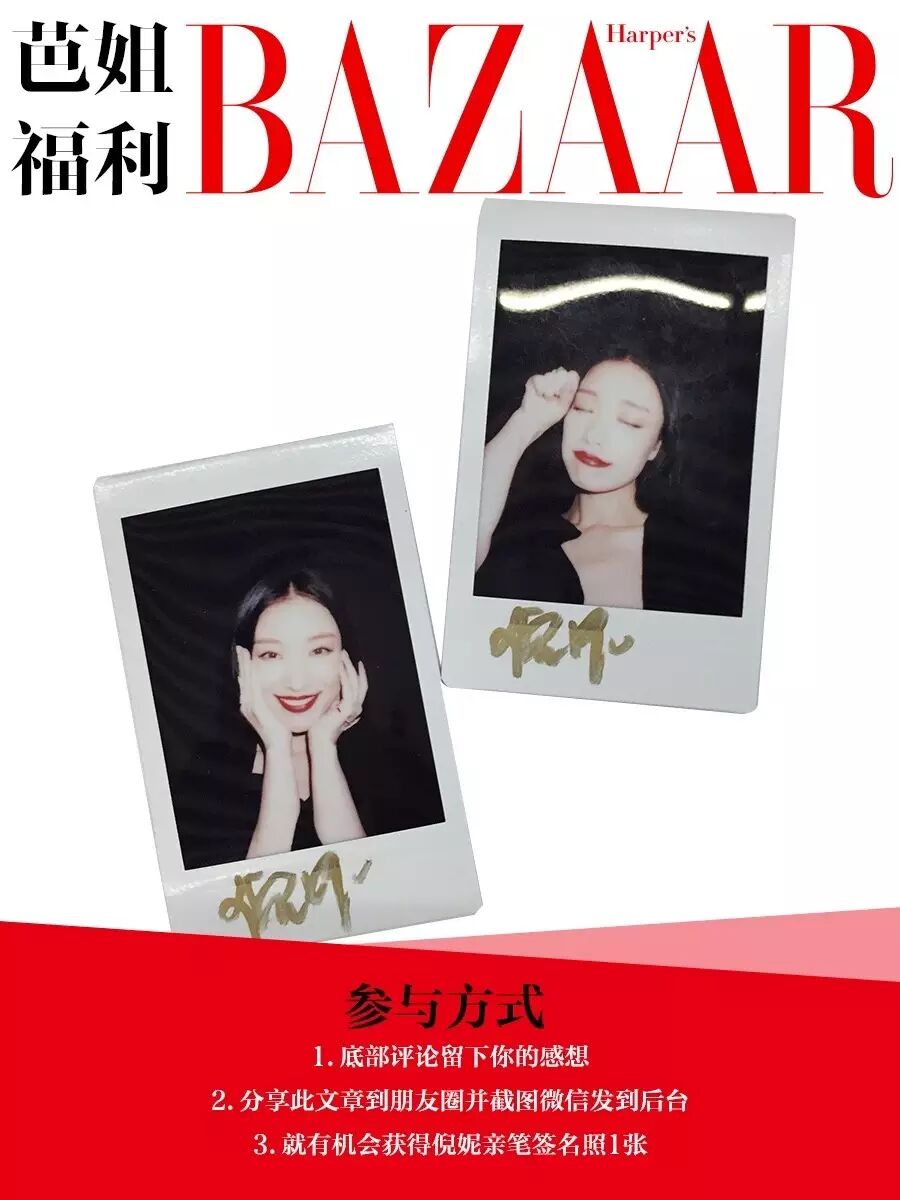 看了这么多女神美炸了的自拍照,现在芭姐就为你奉上本期福利,带有倪妮亲笔签名的拍立得自拍两张!!参与方式如图,还不抓紧来抢?话说芭姐都想自留了。。