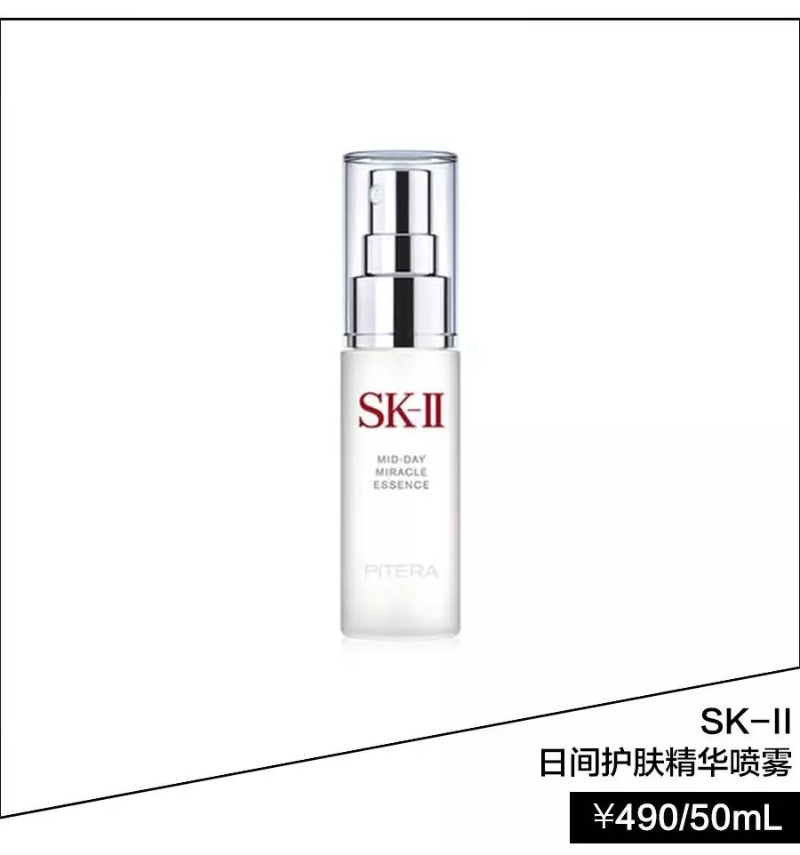 倪妮:上妆时间太久或者脸太干燥的时候,比如在飞机上,我会用SK-II日用和夜用的喷雾,这是一个特别神奇的发明,适合懒人,喷在脸上后拍一拍就好。
