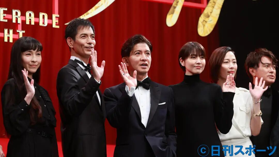 木村拓哉(48岁)今日出席了在东京市内举办的主演电影《假面之夜》(铃木雅之任导演,17号上映)的完成试播活动。女演员长泽雅美(34岁)与泽村一树(54岁)等人也配合电影主题佩戴上了假面,身穿西装出席了这场活动。
