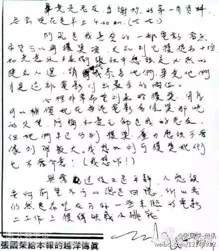 张国荣的笔迹另一个显著特点是字间距非常大,很多字间距都已经超出了一个字的大小。在笔迹心理学中,字间距是反映书写者与他人之间的距离的,字间距大的人,喜欢和别人保持足够的心理距离。但在笔迹分析的实践中,我发现字间距大的书写者其原生家庭中的能量流动亦是不健康甚至是不流动的(周安山老师也有此发现),通常都是书写者童年时期父母之间关系异常的呈现。