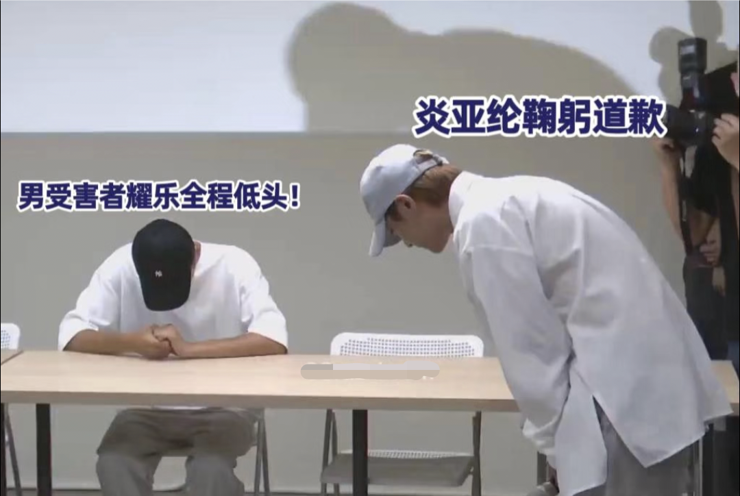 炎亚纶还是技高一筹,直接现身记者会现场,想耀乐二度鞠躬道歉,表示拍摄影片时双方都同意的。