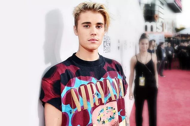 (身着涅槃乐队T恤的比伯)