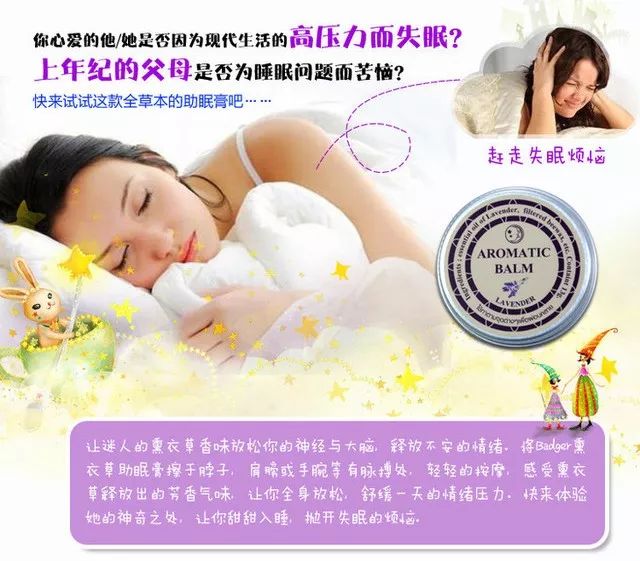 其实这些问题都可以用薰衣草安眠膏来解决,家中备一盒,全家都适用。