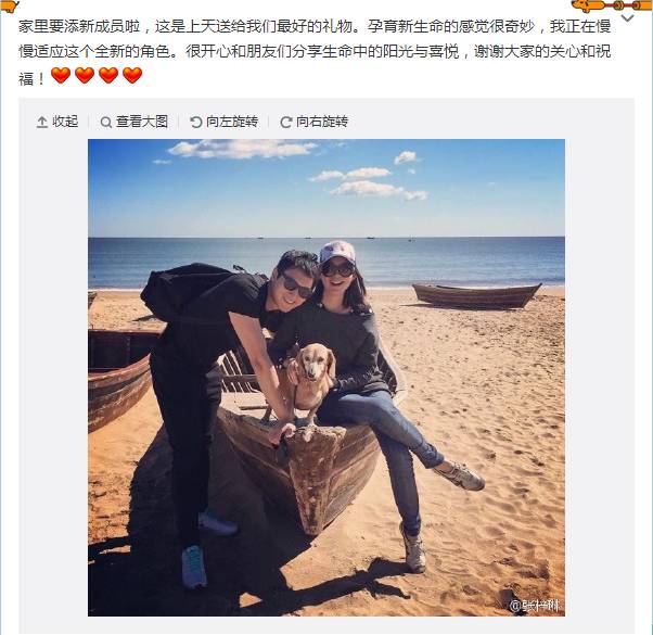 最爱的老公+最爱的小狗+自己,现在家里又要添新成员了,女神张梓琳会更幸福。