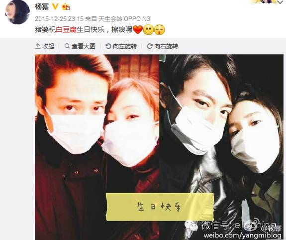 ▲去年霍建华生日,杨幂还在微博晒出两人的亲密合影,大幂幂还不忘“深情表白”道:“猪婆祝白豆腐生日快乐,擦浪嘿”。这友谊也是相当不错~