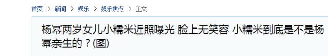 后来因盛传二人离婚,竟然有媒体报道说小糯米不是杨幂亲生的孩子。刘恺威听到以后,笑着说传闻太不靠谱了。近期媒体又晒出小糯米正面照,称孩子因长期见不到父母所以面上无笑容。