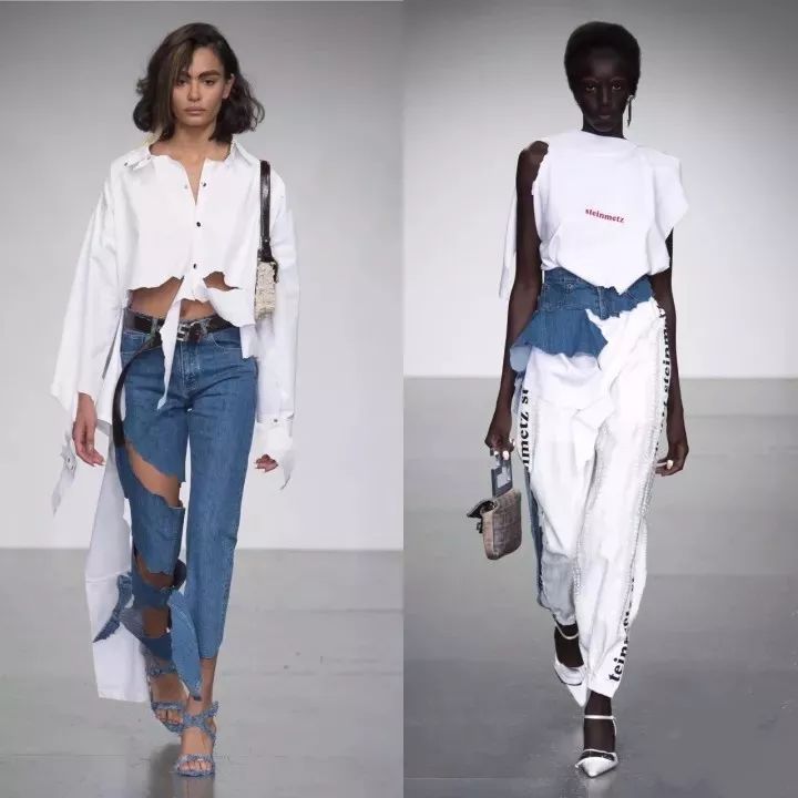 Faustine Steinmetz 2018春夏系列,面料再造的破坏感和基础单品的实穿性结合,娘man度控制得很好,姑娘们帅炸天