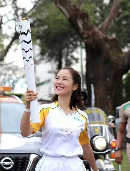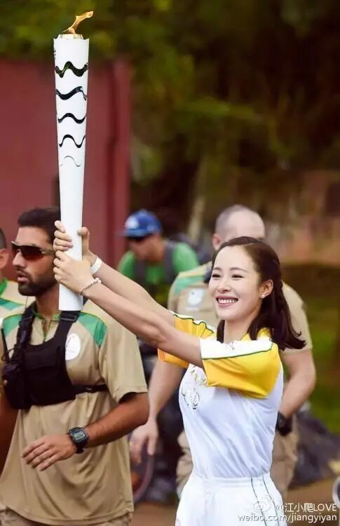 2016里约奥运会在巴西伊瓜苏传递时,中国有六名火炬手,其中有钢琴家郎朗,还有一位青年演员江一燕▼