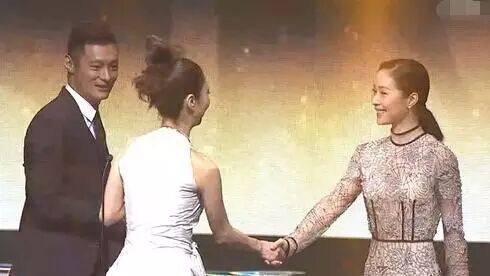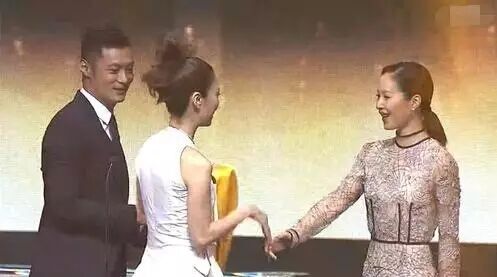 然后江一燕上台领奖,薛凯琪仅握手两秒钟就又松手了。。▼