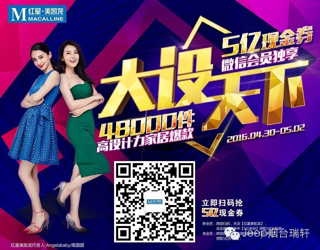 机场路烟台瑞轩Jeep4S店携手红星美凯龙送您五亿,大设天下!