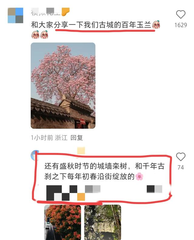 甚至有网友写诗留言:“古城百年玉兰花,女神风采旧如初。”评论区直接变成大型花友会,大家你一言我一语,互相晒自家阳台的花。