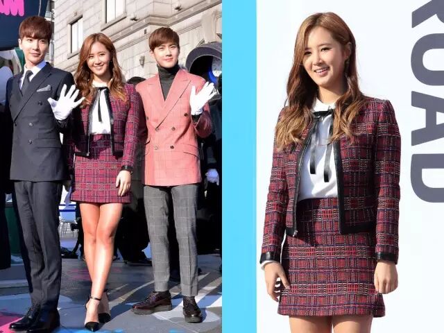 先来俞利,格纹小套装乖乖女气质,制服款式的硬朗曲线好似回到学生时代,包身短裙好身材立显。
