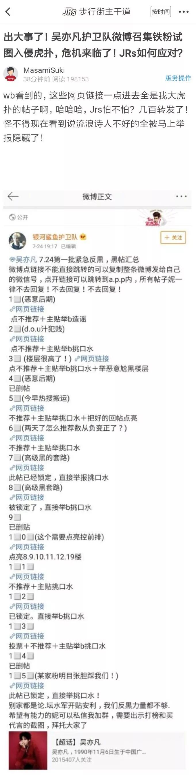 在这个帖子发出仅1小时后,有人发现吴亦凡的粉丝们已经在微博上秣马厉兵,准备杀进虎扑,定向踩和举报嘲笑吴亦凡的帖子。