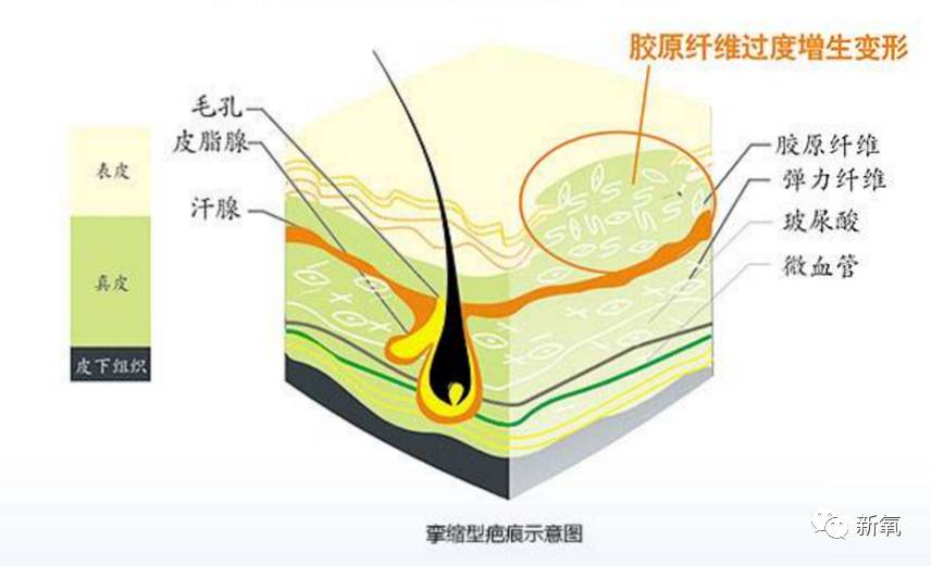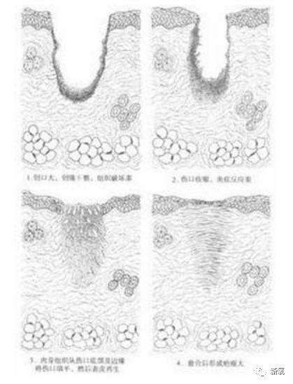 伤口是由于皮肤的胶原纤维修复的过程中,纤维母细胞和肉芽组织就会过度增生,过多增生的纤维母细胞和肉芽组织就会纤维化,沉积后形成难看的伤疤。