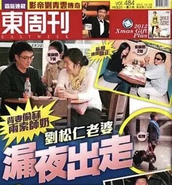 某周刊还大幅报道过,刘松仁背着妻子周旋于两个女友之间,导致妻子气得深夜离家。