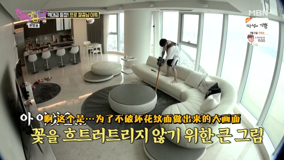 吸尘器打开清扫,地毯吸尘还要弄个造型出来,显得剧姐十分的粗糙了
