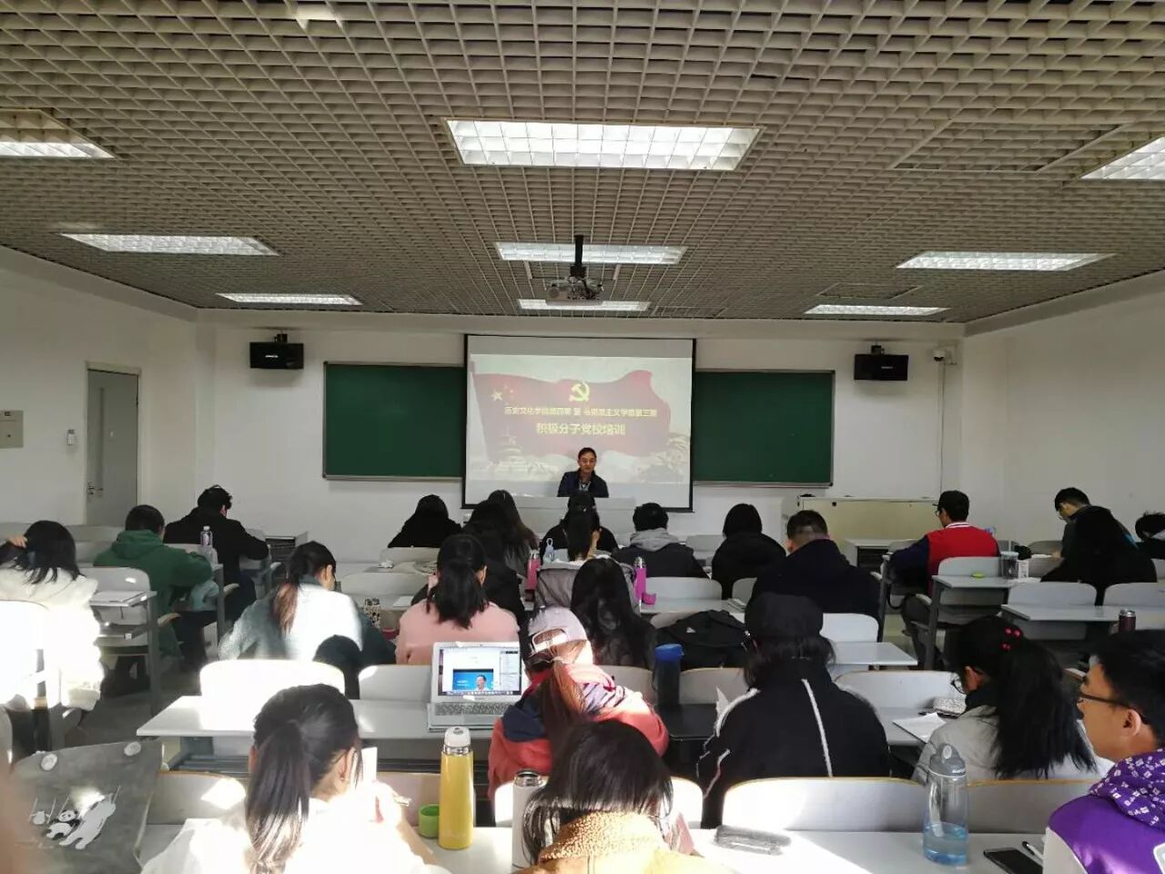 本次党课培训采取以讲授为主,教育与启发诱导相结合,辅之以撰写学习心得、小组讨论、社会实践等方式。其具体形式分为理论学习、小组讨论、社会实践、自学四种,全部课程由马克思主义学院党总支的老师负责培训。在党课培训过程中,各积极分子都以热情饱满、积极上进的精神面貌认真学习、积极发言,培训效果明显。培训结束后,全体积极分子统一在北智楼参加了培训结业考试。