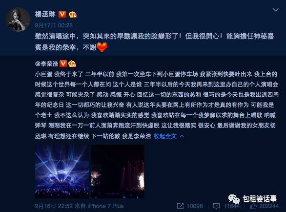 李荣浩在演唱会后接受采访,还说“自己大脑觉得那时候应该这样做,至于照片我看到了,明天的报纸少印一点好了!”(并没有,你们的照片已经刷爆各自的评论区了)