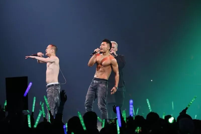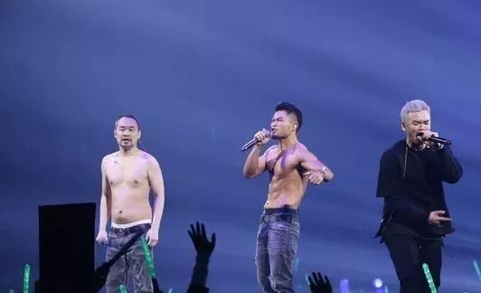 唱到激情处,台上的歌手都脱掉上衣时,李玖哲健硕的身形、分明的胸肌腹肌,瞬间引爆了全场,粉丝们尖叫不停!