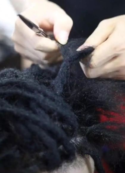 到店里以后理发师就开始工作了,一根一根的解开脏辫,是一项很漫长的工作。