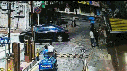 开三轮车的男子迅速冲下车,想去帮忙,这个行为真要给他点个赞