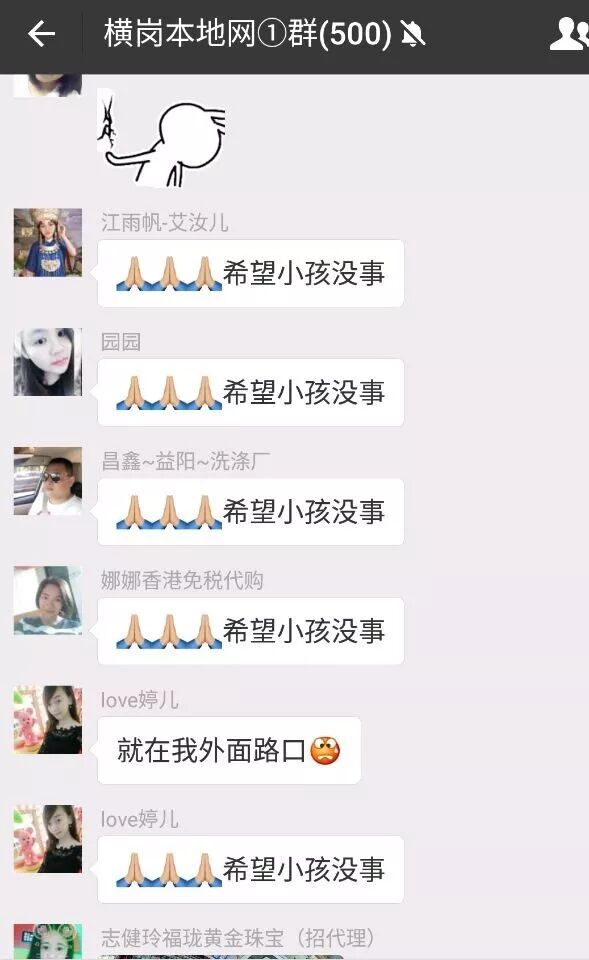 在未知小孩身亡的时候,横岗本地网粉丝微信纷纷祈祷希望小孩没事