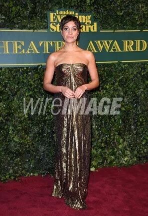 MICHAEL KORS荣幸宣布,英国演员Cush Jumbo(库什•琼博)身穿Michael Kors Collection 2018春季系列金色抹胸礼服,搭配2017早秋系列金属感高跟凉鞋与MICHAEL Michael Kors 2018春季系列蛇纹黑色珍珠手包,于2017年12月3日,在英国伦敦出席London Evening Standard Theatre Awards。