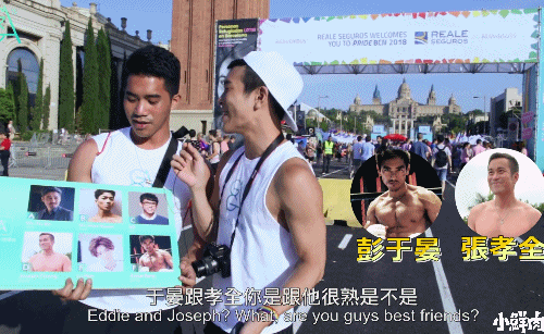 除了棚拍,他还走到了外面,比如有一期巴塞罗那的男士高跟鞋赛跑,他拿着写了彭于晏、张孝全、吴秀波、鹿晗等六个人的卡片给外国人看,看谁中外通吃。