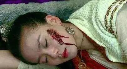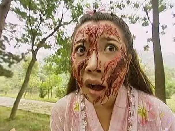 《轩辕剑》里刘诗诗受伤的毁容妆跟林心如好像是同款?不过相比之下刘诗诗的血包加的更多一些,看来道具比较舍得花钱啊!