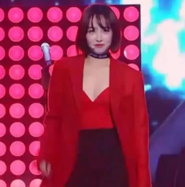 一件红色的小西装,一件红色的吊带,加上高腰裤,又帅又酷,简直让人瞠目结舌。而且她只要是往那一站就是最撩人的存在。