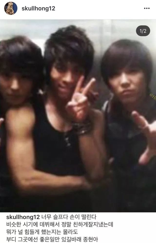 李洪基:太伤心了。手都在抖。差不多在相同的时期出道,相处得一直非常亲近,虽然不知道是什么让你如此痛苦,只希望在那个地方只有美好的事,钟铉啊。