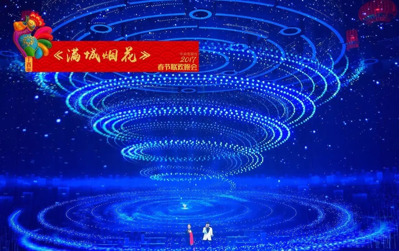 在今年的春晚中,多个节目也都采用了该技术。比如,毛阿敏和张杰的《满城烟花》,其背后出现的螺旋形灯光就是由全息投影而成。