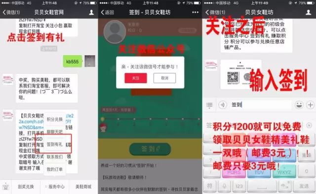 关注公众号贝贝女鞋坊 每天签到积1200分就可以免费领取一双贝贝女鞋坊的精美鞋子一双