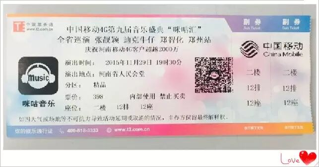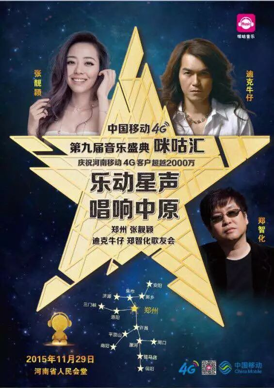 即日起——11月25日,推荐好友关注并绑定“中国移动郑州10086”,推荐数前10名均可获得11月29日张靓颖、迪克牛仔、郑智化郑州歌友会门票一张!