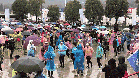 虽然此刻仍蒙蒙细雨,但是抵挡不住参赛者奔腾的内心与奋进的脚步。