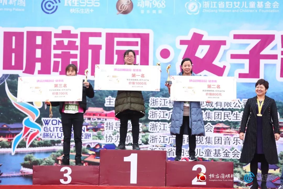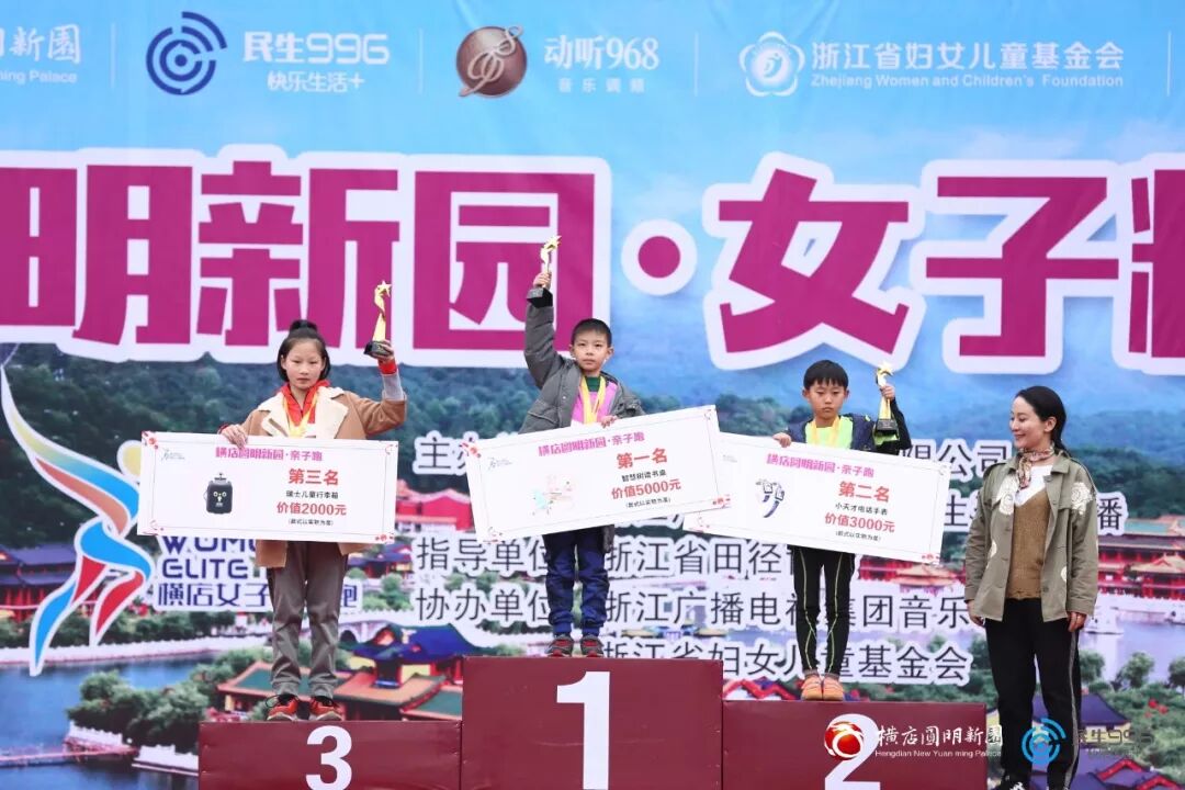 女子精英组、亲子组、健康组的冠亚季军新鲜出炉,主办方为他们颁发证书及奖励。